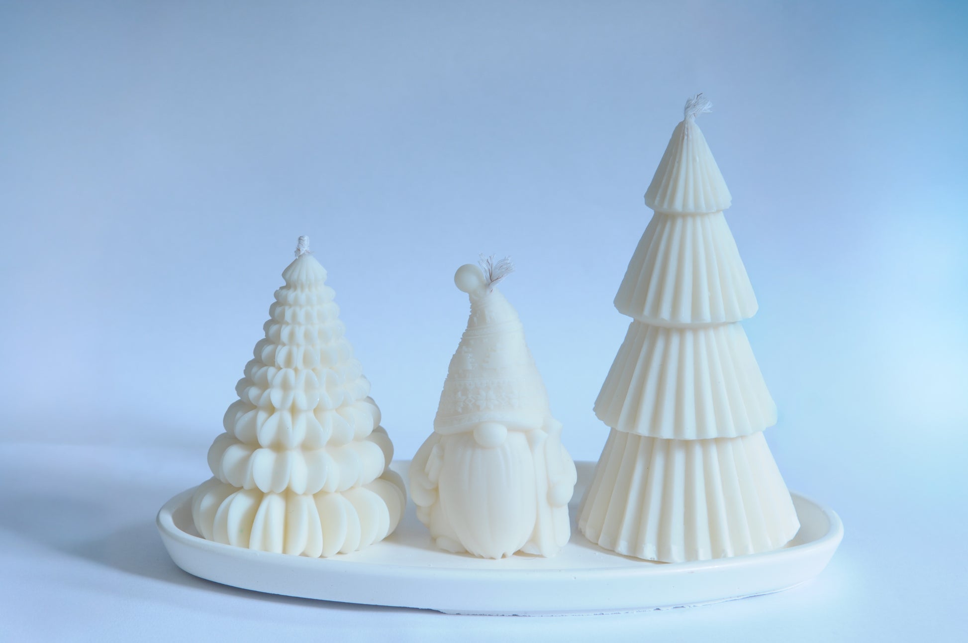 Χριστουγεννιάτικο Σετ Κεριών σε Γύψινη Πιατέλα – Minimal, Κομψό & 100% Φυσικό