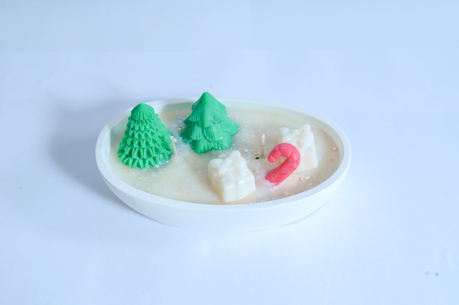 Μικρά δεντράκια, δωράκια και ένα candy cane φτιάχνουν το πιο γλυκό, χειροποίητο σκηνικό για τις γιορτές.